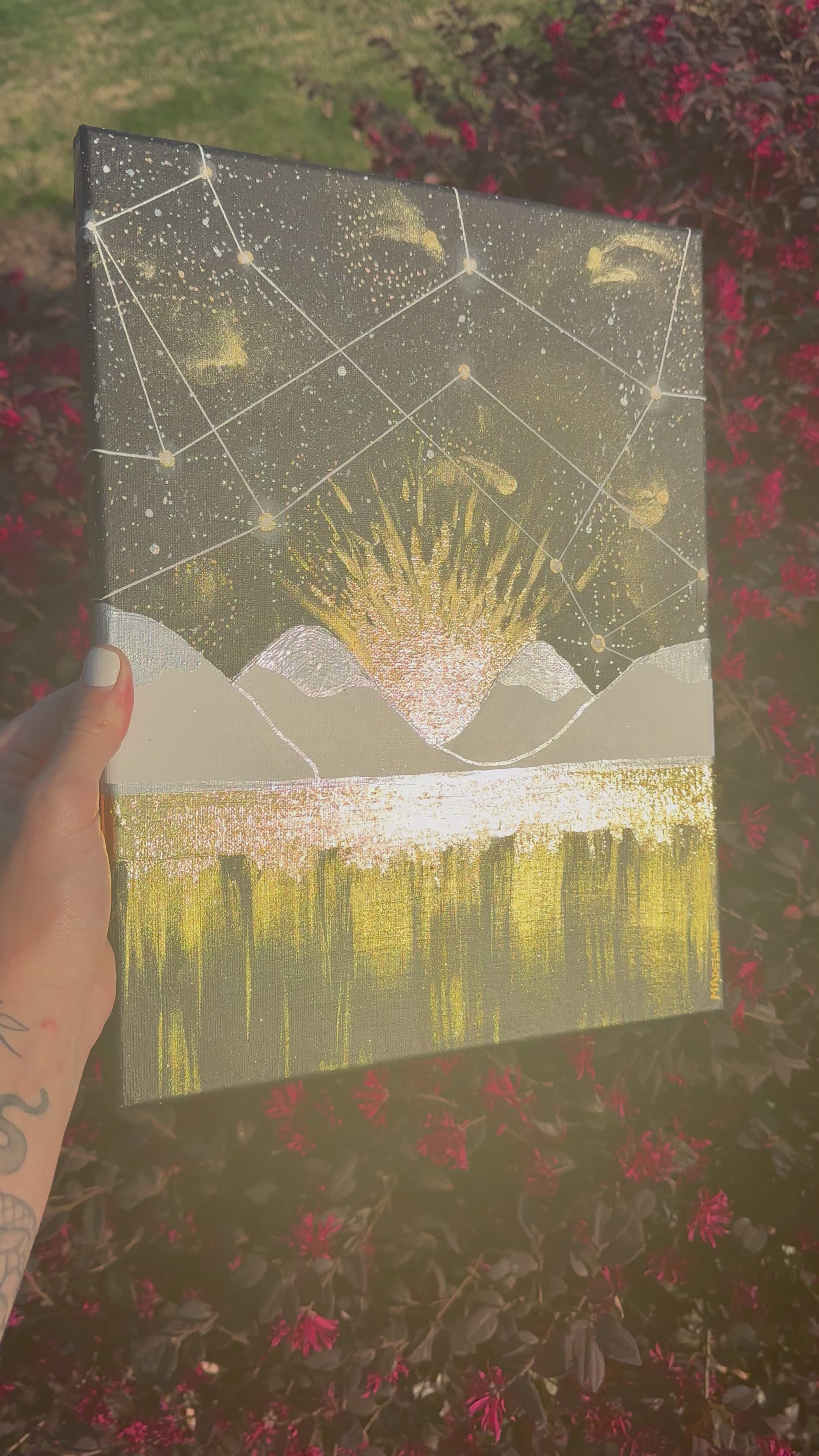 Ink, Acrylic, Watercolor, Marker, and Faux Gold Leaf on Canvas